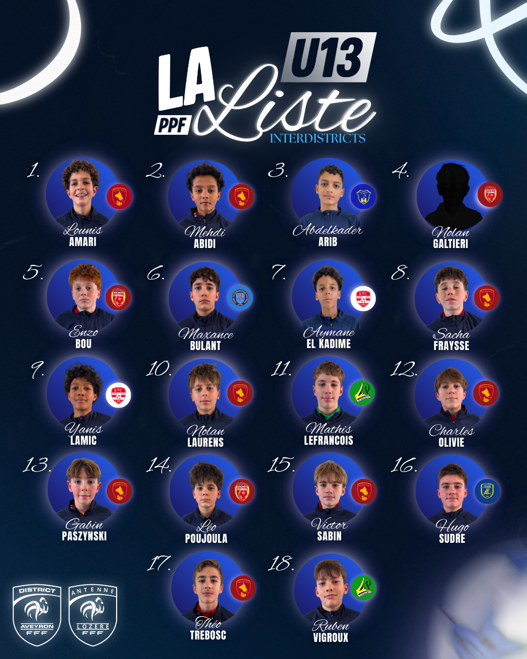 PPF U13 – Liste des joueurs sélectionnés