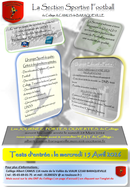 Tu souhaites intégrer la Section Sportive Football du Collège Albert Camus ?